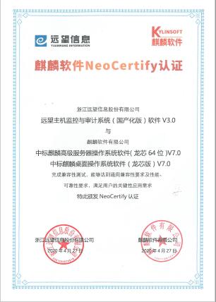 近日,遠望主機監控與審計產(chǎn)品與中標麒麟操作系統完成兼容性測試,成功通過(guò)麒麟軟件NeoCertify認證。這標志著(zhù)遠望主機監控與審計產(chǎn)品可在更大范圍內為政企用戶(hù)提供技術(shù)服務(wù),可更好滿(mǎn)足用戶(hù)的信創(chuàng )應用需求。