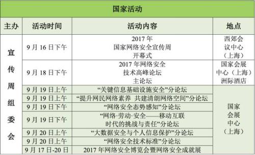 ? ? ? 地點(diǎn):全國范圍內統一舉行,其中開(kāi)幕式、網(wǎng)絡(luò )安全博覽會(huì )暨網(wǎng)絡(luò )安全成就展、網(wǎng)絡(luò )安全技術(shù)高峰論壇、一流網(wǎng)絡(luò )安全學(xué)院示范高校授牌、先進(jìn)典型表彰等重要活動(dòng)在上海市舉辦