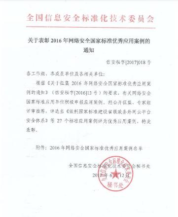信安標委于2016年面向全國組織開(kāi)展了網(wǎng)絡(luò )安全國家標準優(yōu)秀應用案例征集活動(dòng)。經(jīng)過(guò)專(zhuān)家組的層層評審,最終遠望信息、公安部科技信息化局、中國電子技術(shù)標準化研究院等單位的27個(gè)項目脫穎而出,斬獲殊榮。