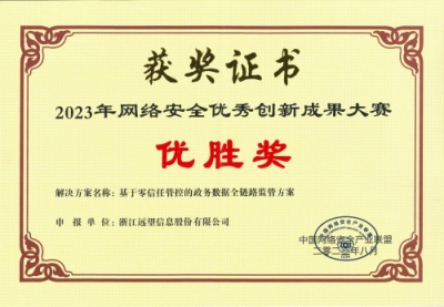 近日,在中國網(wǎng)絡(luò )安全產(chǎn)業(yè)聯(lián)盟主辦的“2023年網(wǎng)絡(luò )安全優(yōu)秀創(chuàng )新成果大賽”上,遠望信息“基于零信任管控的政務(wù)數據安全全鏈路監管方案”榮獲優(yōu)勝獎。